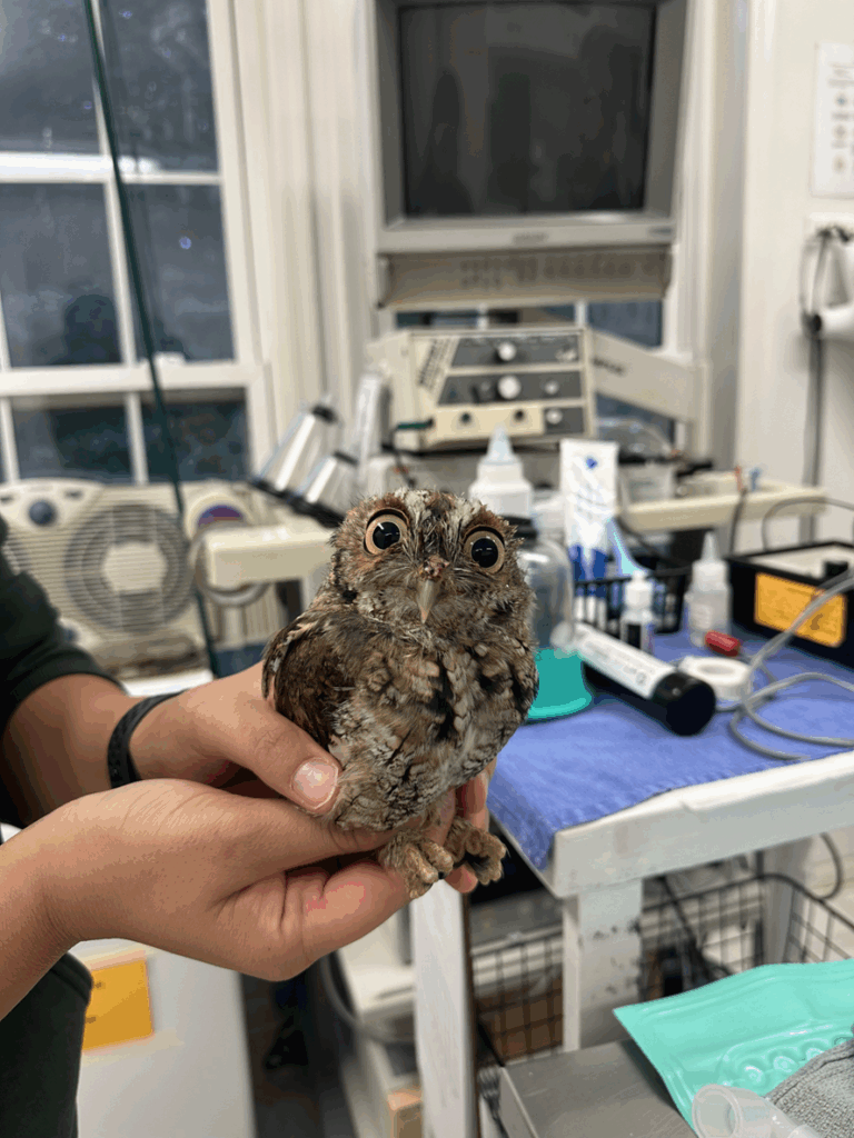 In late August, our Raptor Hospital team admitted a young Eastern Screech Owl, Patient #27305, that initially stumped them. Upon admission, the owl appeared to be in good health, and our team initially struggled to determine why it had been grounded and captured so easily.